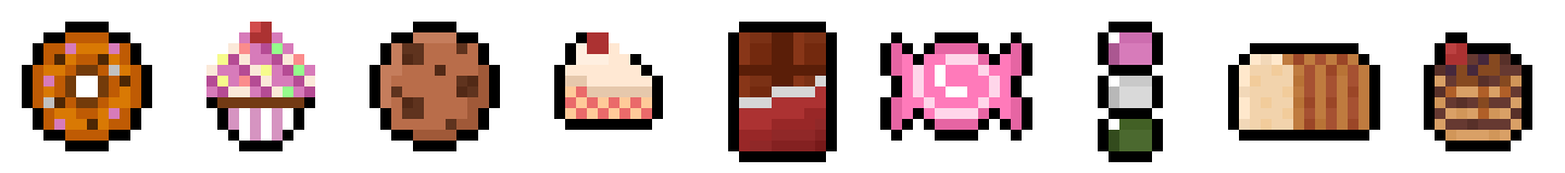 -Add 9 food donus,cupcake,cookie,cake,chocolate,